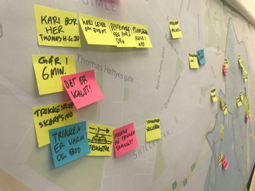 Vi brukte mye tid på mapping, og bodde bokstavelig talt i informasjonen. Vi prøvde å skape oss en oversikt over bydrift for å identifisere interessante mulighetsområder vi kunne designe innen.